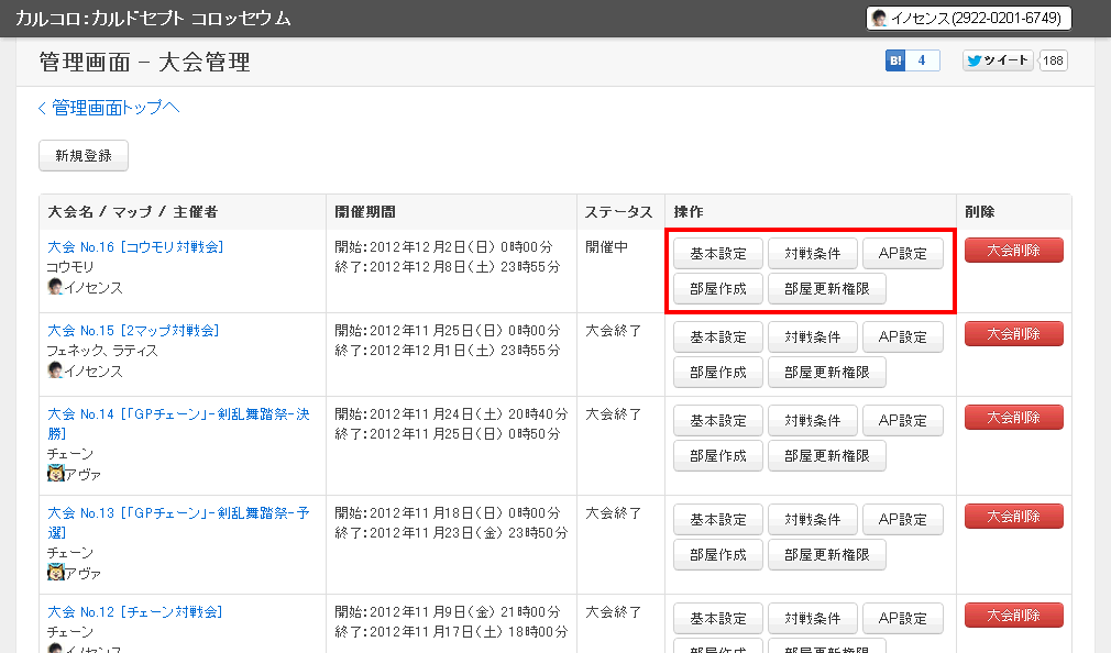 5. 登録済みの大会に対する操作